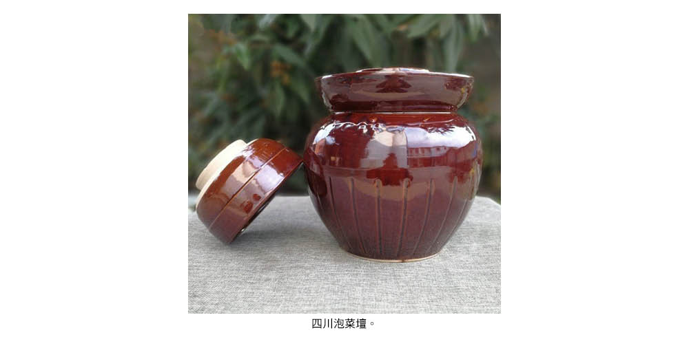 「世界泡菜看中國,中國泡菜看四川」,四川泡菜產、銷量均居全國第一,每年以15%的速度遞增。四川傳統手工泡菜之所以如此有名,是綜合巴蜀地區獨特的地理、氣候、物產等自然環境,以及社會、經濟、民俗等人文環境的結果,但其關鍵還是在鹽水浸泡和乳酸發酵的製作技藝。而有沿(唇)的泡菜壇是古代製作泡菜必不可少的器具。這種泡菜壇肚大口小,在壇口外延還有一圈水槽,俗稱壇沿,壇口用倒扣的壇蓋密封,同時能自動排氣。