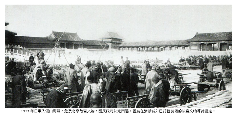 故宮文物有兩次大遷徙。第一次是1933-1947年,為避日軍戰火,先將1.3萬餘箱文物遷往上海,再遷南京,後分南、中、北三路輾轉遷至四川,翻越窮山惡水,住過山洞、避過蟲鼠,直至1947年遷回南京。據當時「南路」負責人,也是1948年押運故宮第一批文物來台的莊嚴之子莊靈說,當年為完好無誤地打包裝箱,特請琉璃廠古董商號專家傳授方法,每一件都包得非常嚴實。與事的老人也回憶:正因為繁複過度的包裝,讓這些中華文化瑰寶度過幾次劫難。