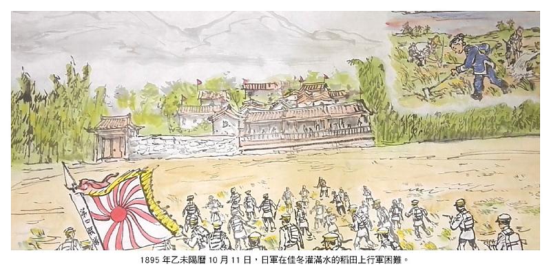 1895年10月11日,日軍近一千人從早上到中午進入佳冬城外牆,城內有幾千人,但能夠打仗的不多。蕭開平說,他聽到很多抗日後代家屬說,他們的祖母那個時候幫忙裝子彈、填火藥、燒熱水。所以,有些陷在城外的日軍被村民澆熱水、丟石頭、被土槍打中,可見當時戰鬥多麼慘烈。